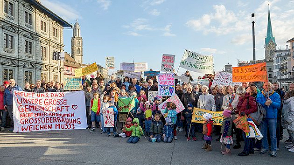 All das haben die Mieterinnen und Mieter des Brunauparks am 15. März 2019 aus einer Antwort des Zürcher Stadtrats an den Gemeinderat herauslesen müssen. Sie haben sofort gehandelt. Sie gründeten den Verein IG Leben im Brunaupark. Und schon am 27. März stand eine bunte Gruppe von Mieterinnen und Mietern vor dem Zürcher Rathaus. Sie forderten, in der Planung des Brunauparks eine Denkpause einzulegen, um über den Erhalt von bezahlbaren Wohnungen und eine Bleibegarantie der Mieterinnen und Mieter diskutieren zu können. Und sie wiederholten den schon eine Woche zuvor von SP, Grünen und AL erhobenen Appell an den Stadtrat, auf die vorzeitige Entlassung von Wohnungen aus der Mietzinskontrolle zu verzichten.